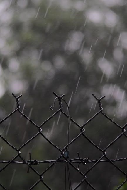 Chain-link fence tension wire, thoroughly detailed in PDF specification guides, plays a vital role in maintaining fabric tautness and preventing sagging. Typically constructed from steel, tension wire is installed horizontally along the top and bottom of the fence, and sometimes intermediately for taller fences. ASTM F1664 covers polymer-coated tension wire options for increased longevity and corrosion resistance, as outlined in the PDFs.